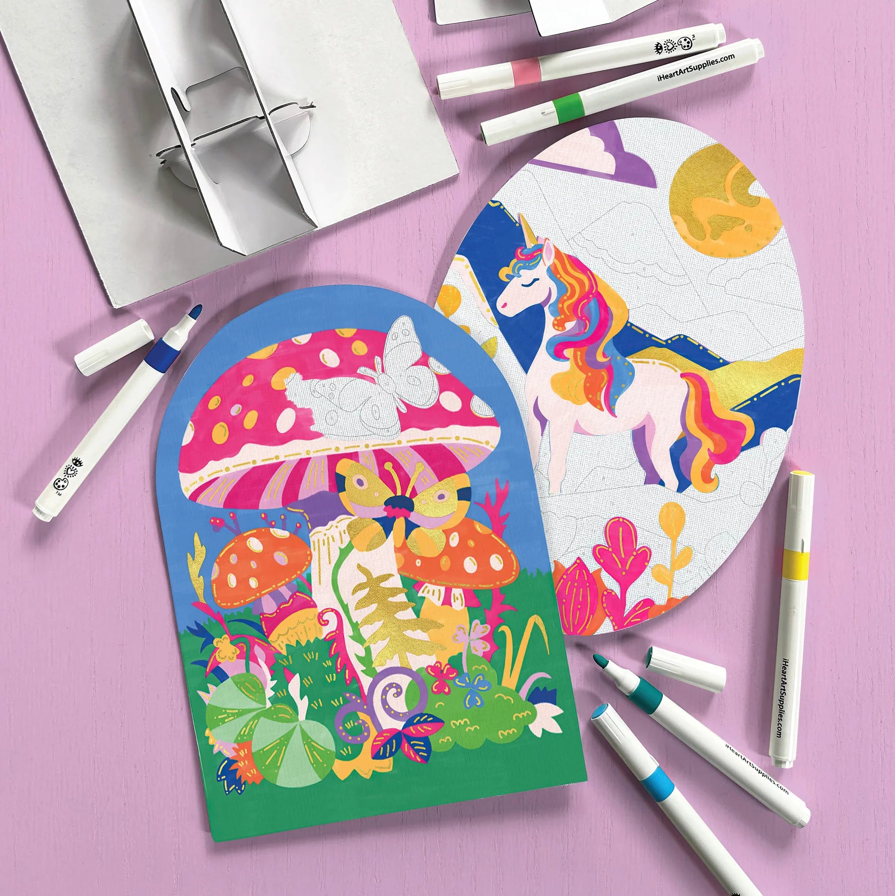 ¡Descubre una nueva y emocionante forma de crear arte hermoso! Usa rotuladores de pintura con punta de pincel para rellenar las áreas numeradas y añadir detalles. ¡Crear arte intrincado es muy fácil! Perfecto para niños a partir de 8 años, este set te permite explorar un mundo mágico de fantasía usando rotuladores acrílicos vibrantes en lugar de pintura tradicional. Con 12 hermosos rotuladores, incluyendo uno dorado deslumbrante, puedes dar vida a escenas fantásticas de unicornios, mariposas y flores silvestres. Los lienzos con formas únicas añaden un toque extra de diversión, permitiendo que tu obra destaque con sus diseños atrevidos y coloridos. ¡Sumérgete en un mundo de imaginación y observa cómo tu obra se transforma en una obra maestra!