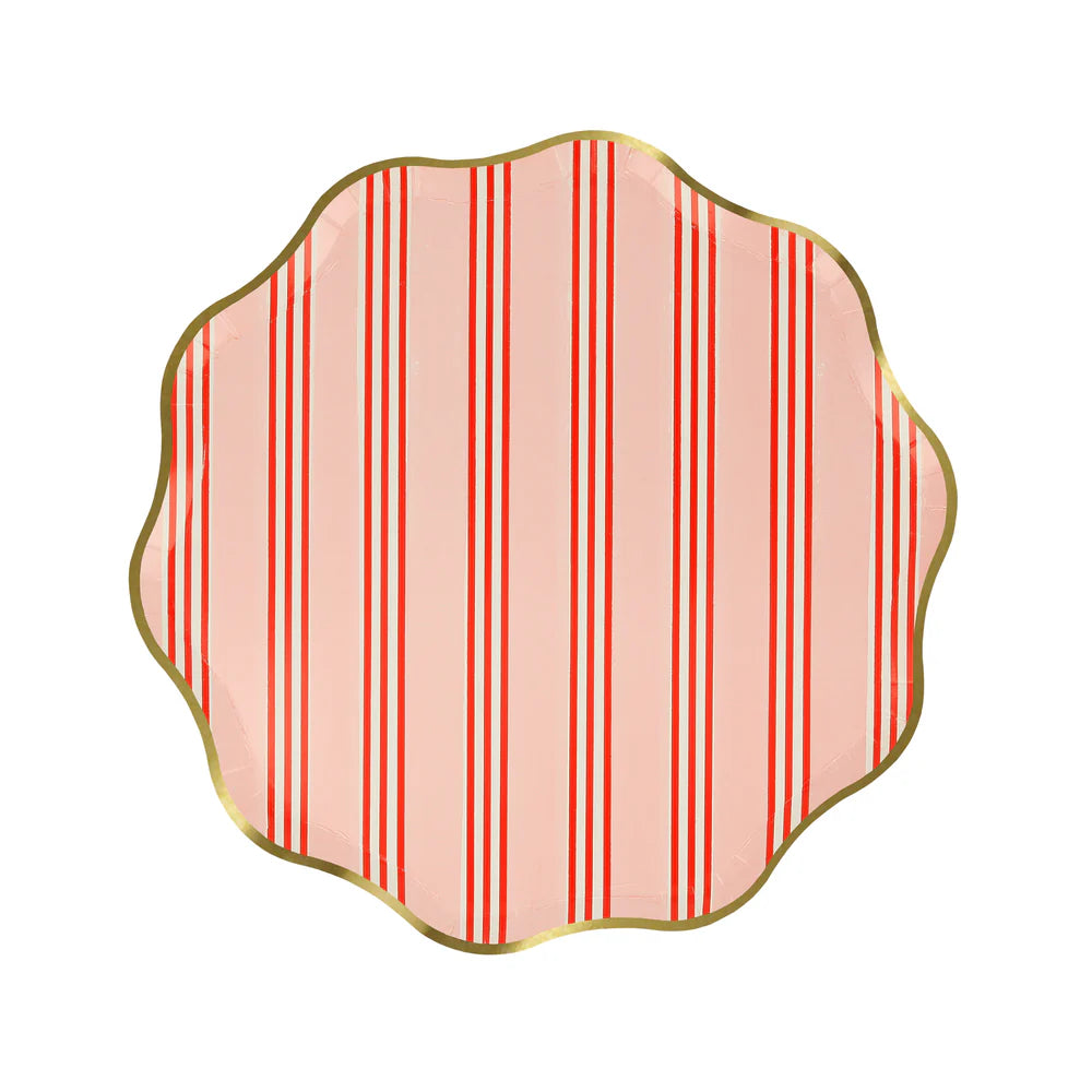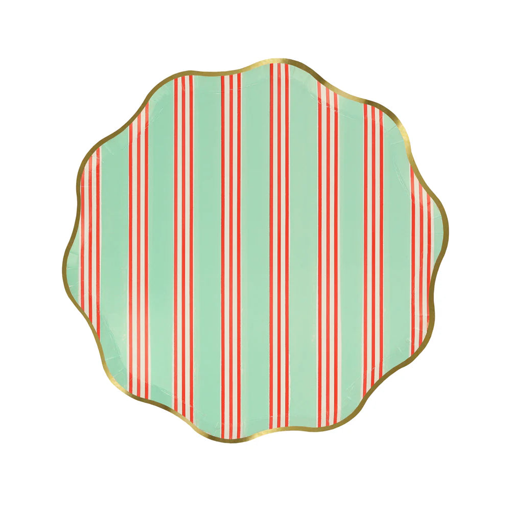 Las rayas llamativas son un elemento destacado. Especialmente con nuestra combinación de los tradicionales colores festivos rojo y verde, con un toque moderno de rosa y azul y un brillante papel dorado, para un toque alegre y brillante. Estos fabulosos platos de papel, con bordes ondulados, son ideales para decorar mesas navideñas o para cócteles.