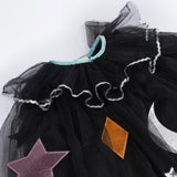 ¡Deja que tus pequeñas brujas vuelen por los cielos con un estilo increíble! Nuestros ingeniosos diseñadores han utilizado una lujosa combinación de tul, terciopelo, polipiel metalizada, organza, ric rac y lentejuelas para lograr un efecto mágico. Este maravilloso conjunto incluye una capa vaporosa, un sombrero con un gran lazo a la moda y una varita brillante con forma de estrella. El regalo perfecto para disfrazarse en Halloween y para disfrutar del juego imaginativo durante mucho tiempo después.