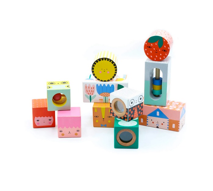 Descubre los cubos sonoros de la ilustradora Suzy Ultman de Vilac , un set de 11 cubos de madera para niños a partir de 18 meses . Un original juguete educativo con el que los niños aprenderán a tocar y manipular mientras descubren los sonidos.