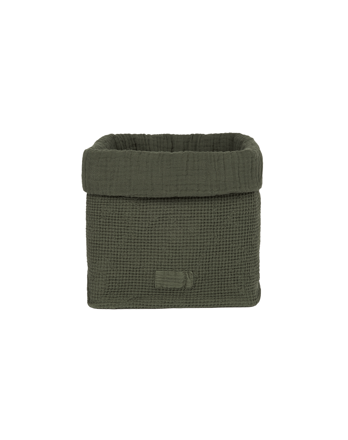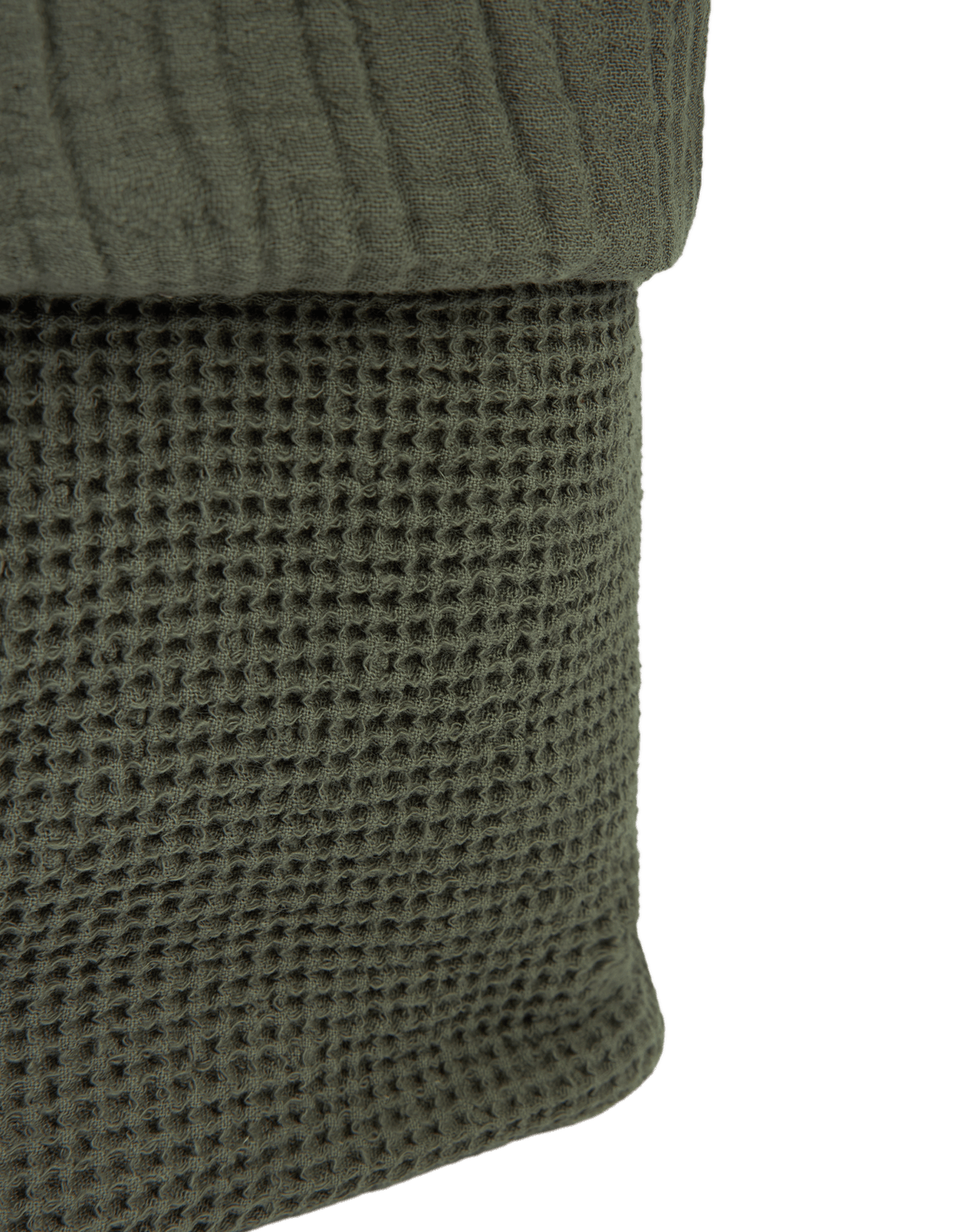 La cesta Wabi-Sabi combina la elegancia del nido de abeja con la suavidad de la doble gasa de algodón orgánico lavado. Ideal para guardar pequeños juguetes o accesorios para cambiar a tu bebé, siempre es útil.