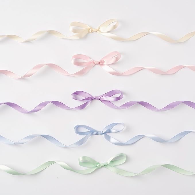 Aporta suavidad y elegancia a tus creaciones con las cintas de raso en colores pastel de alta calidad de Folia. Este encantador set incluye 5 rollos de cintas satinadas brillantes en delicados tonos: crema, rosa, morado, azul claro y verde menta.