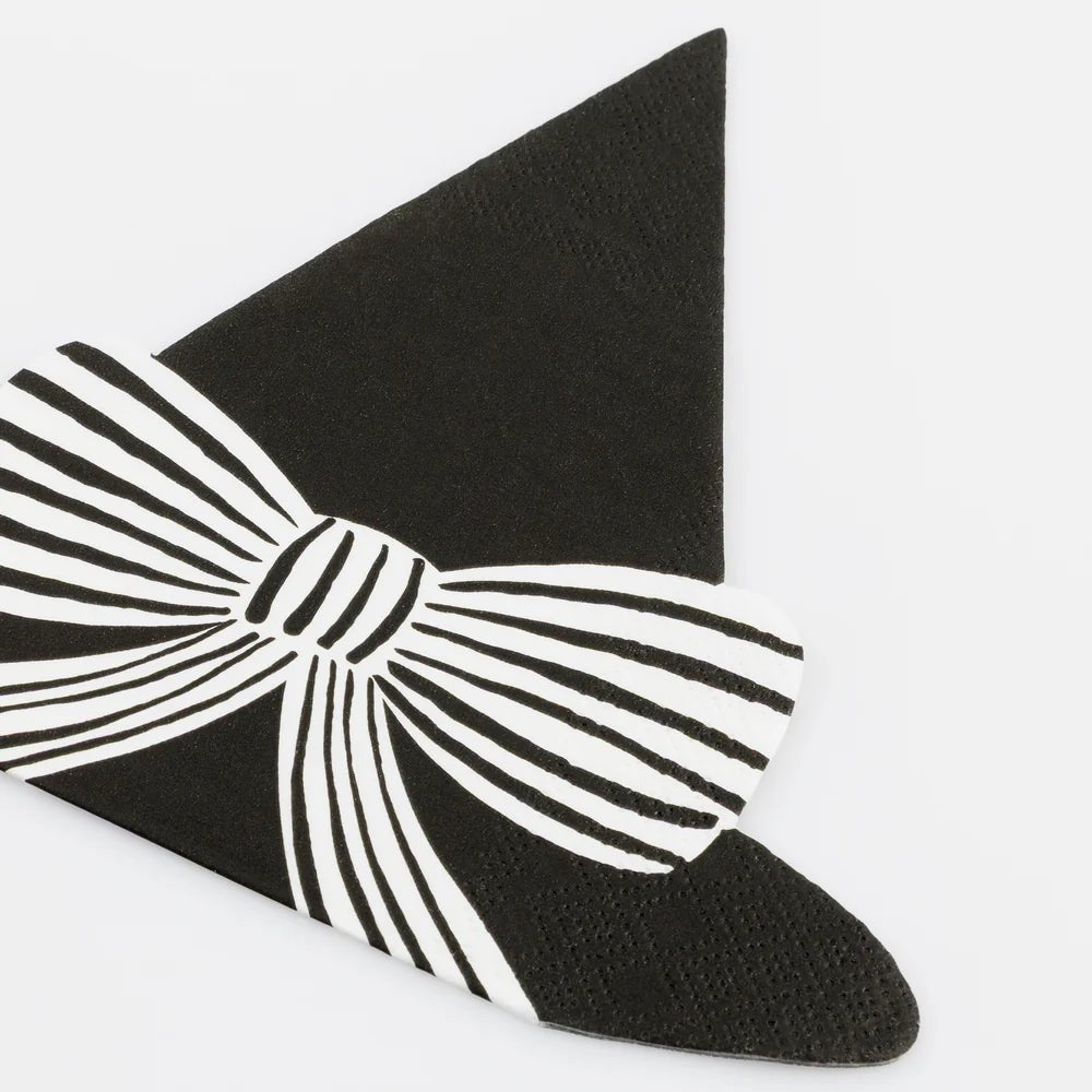 La hora de las brujas ha llegado de nuevo, así que emociona a tu pequeño aquelarre con una elegante y misteriosa fiesta de Halloween. Estas servilletas con sombreros de bruja, adornadas con elegantes lazos de rayas, le darán un toque mágico a tu mesa. El diseño en blanco y negro combina a la perfección con el resto de tu vajilla y decoración de Halloween.