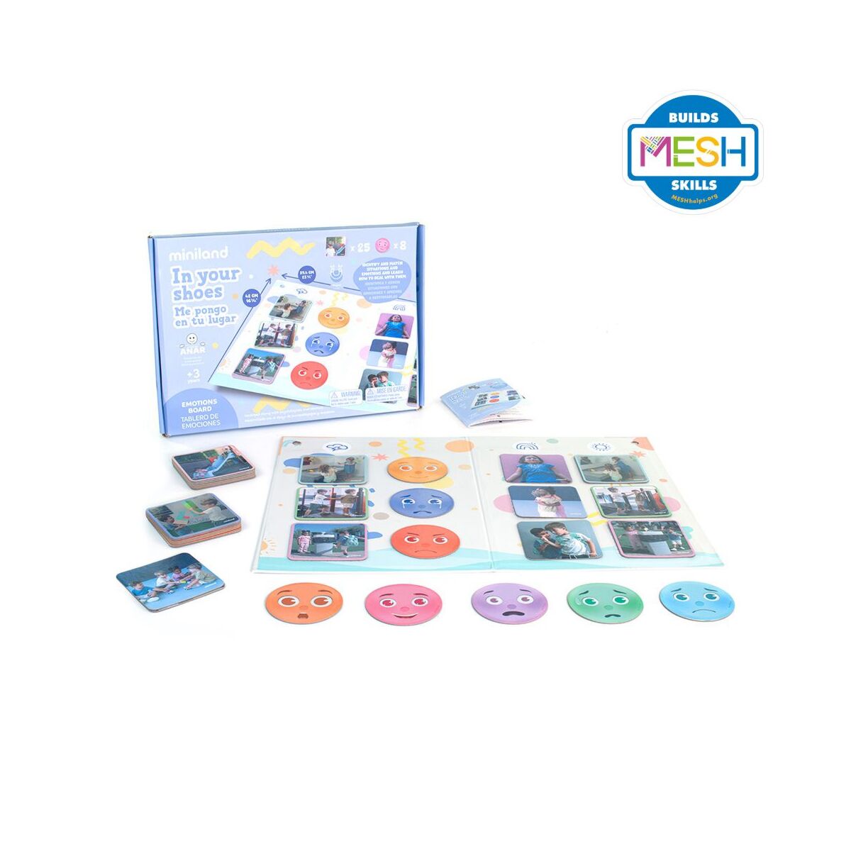 Me pongo en tu lugar es un completo juego diseñado para trabajar la empatía y la cooperación desde la infancia. A través de un tablero de emociones y 25 imágenes ilustrativas, los niños analizarán situaciones de preacoso escolar, aprendiendo a identificar conflictos relacionados con el bullying, comprender sus propias emociones y explorar herramientas para transformar esas experiencias.