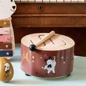 Tambor de madera, redondo y fácil de manejar. Despertará la sensibilidad musical y el sentido del ritmo de tu hijo. Los variados sonidos que produce dependen de la zona donde se golpee, ya sea con la baqueta o con las manos.