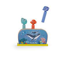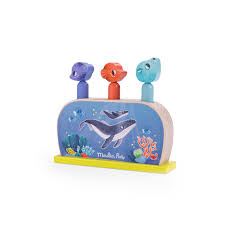 Pop-up de madera compuesto por una base y 3 personajes de la colección Paulie's Adventures, ¡listos para saltar por todas partes! Juguete educativo que consiste en colocar a los personajes en los agujeros y presionarles la cabeza para que salten.