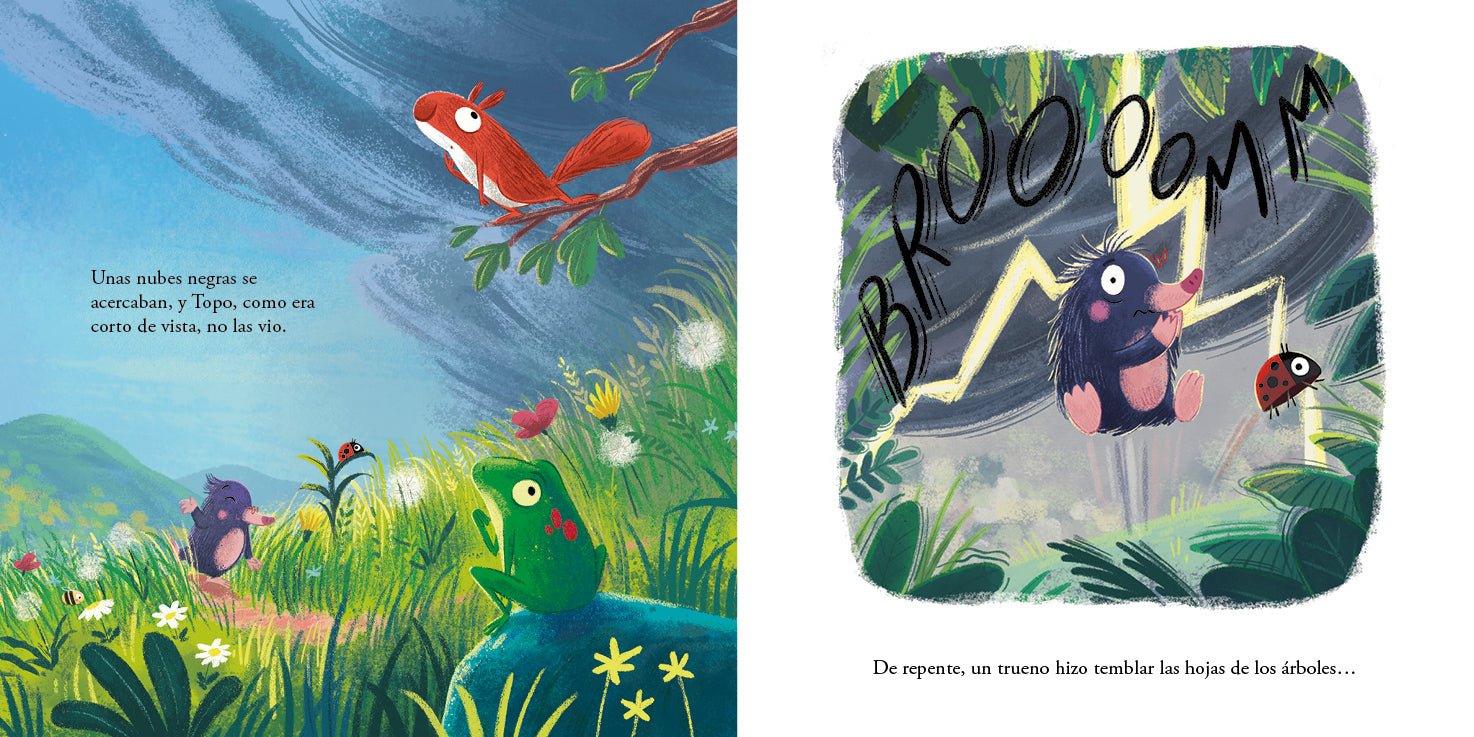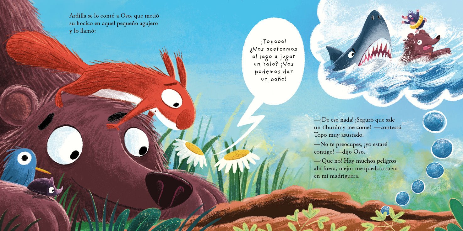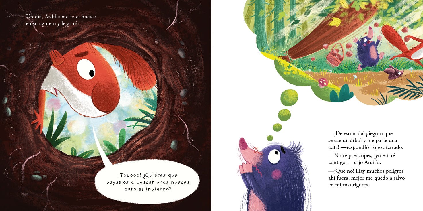 Topo tiene una mala experiencia y se vuelve muy miedoso, se niega a salir de su acogedora madriguera. Mapache, Oso, Tejón, Castor y Ardilla le proponen divertidas actividades que antes hacían juntos, pero no consiguen convencerlo. Aun así, sus amigos no se dan por vencidos e idean un plan. ¿Conseguirán que Topo salga de su madriguera?