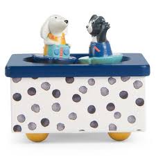 ¡Lleva a tu hijo al mundo de los sueños con la caja de música Puce & Pilou ! Gira la llave y sonará la música " Fin de semana en Roma " de Etienne Daho , y verás a Puce y Pilou bailando de alegría. ¡Una escena mágica que calmará al bebé antes de dormir!