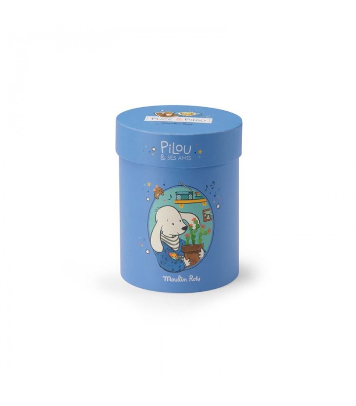 El tierno Pilou, ¡el compañero perfecto para suaves abrazos! Se puede llevar a cualquier lugar gracias a su tamaño, ideal para los brazos de los más pequeños. Pilou espera pacientemente dentro de una caja redonda bellamente ilustrada.