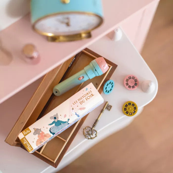 ¡Bienvenidos al mundo de la pequeña escuela de baile! Incluye una lámpara de proyección y 3 discos para imaginar bonitas historias antes de quedarte dormido por la noche. Apagamos la luz para que suceda la magia y listo…