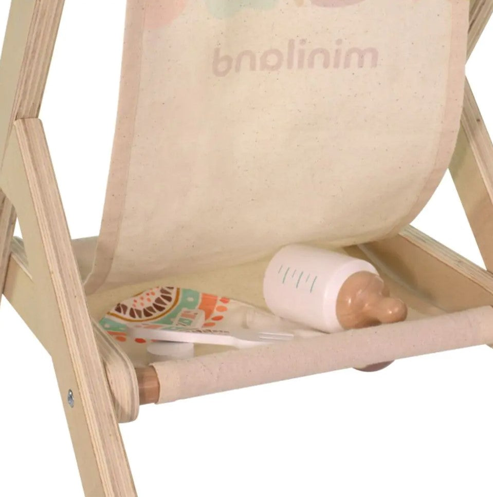 Sillita de paseo para muñecos y muñecas. A los más pequeños les encantará ir con su carrito de juguete para muñecos a todas partes. Además, está fabricada en madera de bosques sostenibles.