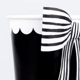 Sorprende a los pequeños magos y brujas con una elegante y misteriosa fiesta de Halloween. Estos vasos negros, adornados con elegantes lazos de rayas, le dan un toque mágico a tus bebidas. El clásico diseño en blanco y negro combina a la perfección con el resto de tu vajilla y decoración de Halloween.